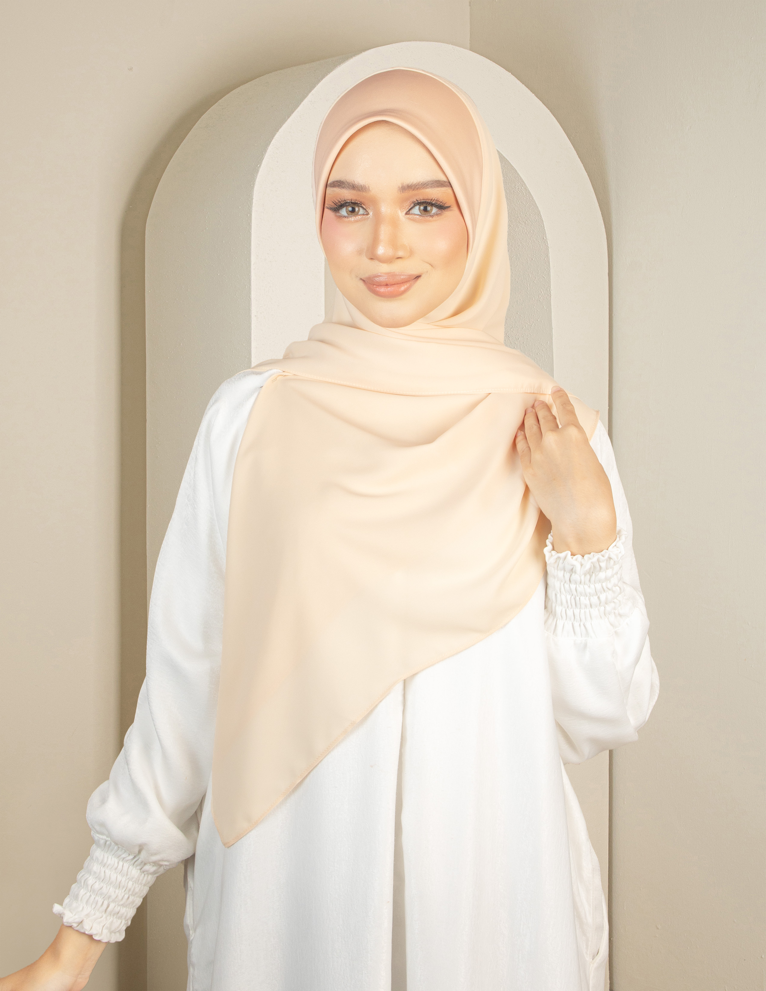 Lebar bidang 50 inci memberikan liputan yang sempurna untuk gaya bertudung yang lebih anggun dan sopan. Setiap helai turut dilengkapi dengan metal tag eksklusif Qaira Hijab sebagai tanda kualiti dan keaslian jenama.