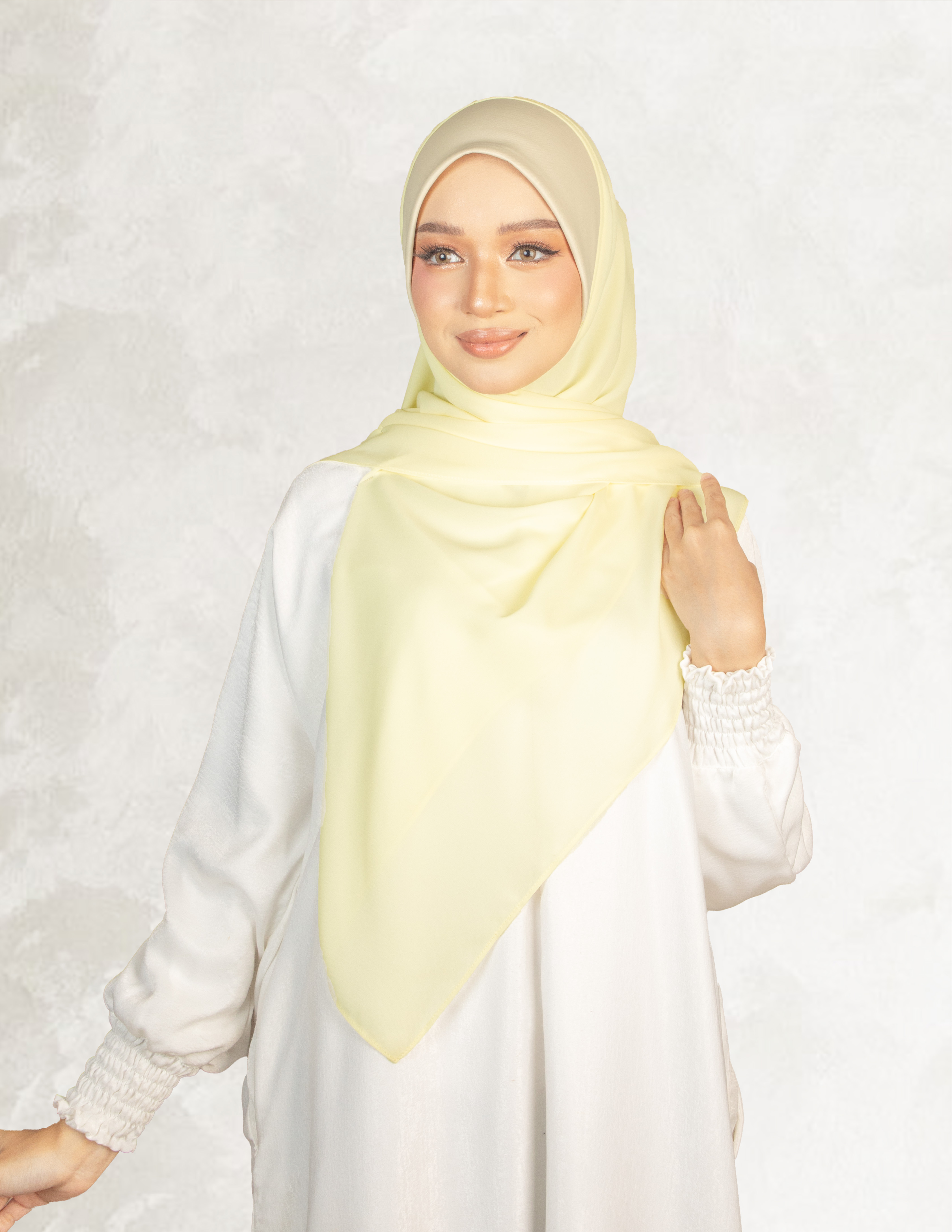 Lebar bidang 50 inci memberikan liputan yang sempurna untuk gaya bertudung yang lebih anggun dan sopan. Setiap helai turut dilengkapi dengan metal tag eksklusif Qaira Hijab sebagai tanda kualiti dan keaslian jenama.