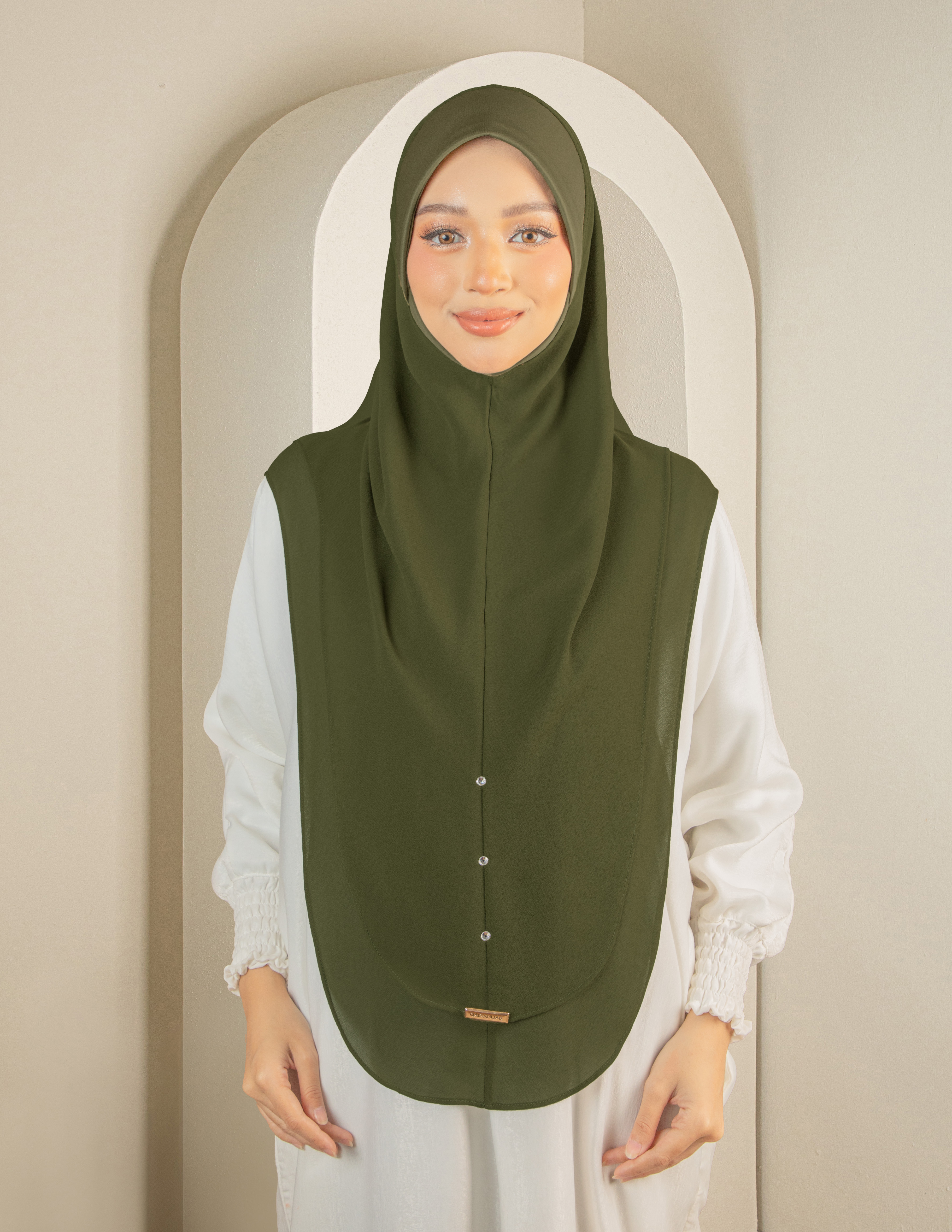 Metal tag eksklusif — sentuhan premium Qaira Hijab