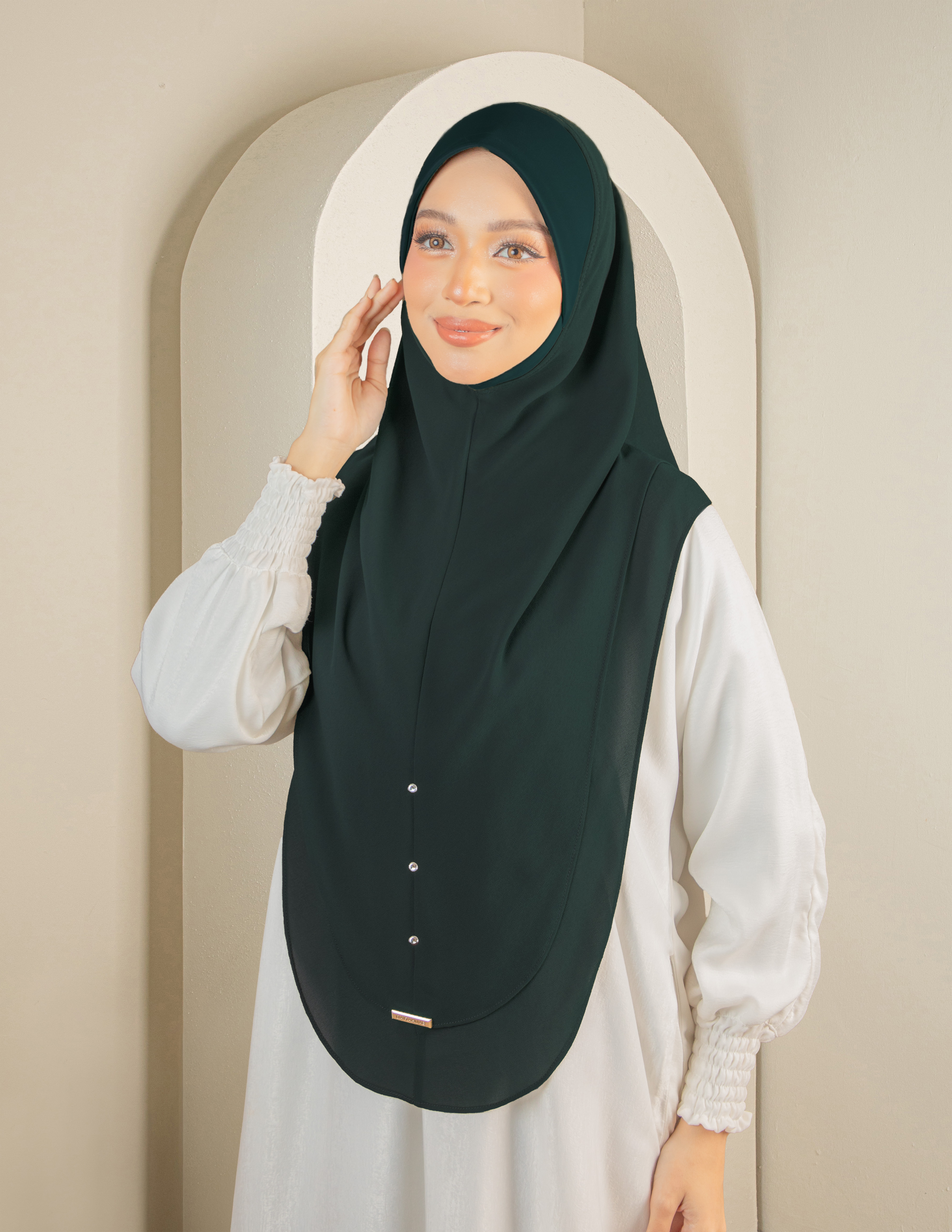 Metal tag eksklusif — sentuhan premium Qaira Hijab