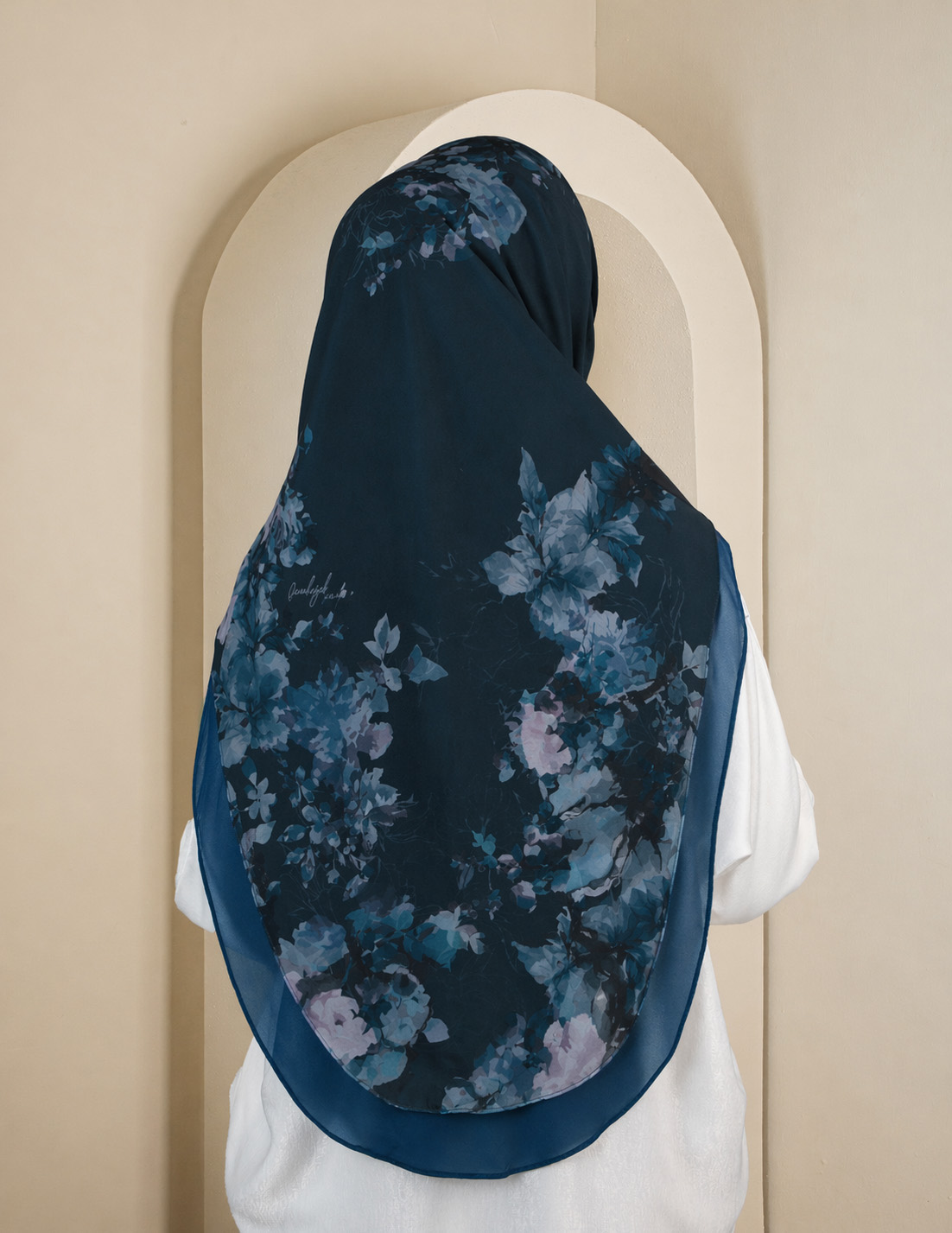Bahagian body diperbuat daripada Chiffon Georgette yang ringan, lembut dan jatuh cantik, manakala awning serta chin cover menggunakan material Scuba yang stabil dan kemas. Potongan slim cut memberikan ilusi wajah yang lebih runcing serta penampilan yang teratur sepanjang hari. Dilengkapi dengan metal tag eksklusif sebagai simbol kualiti dan ketelitian jenama.