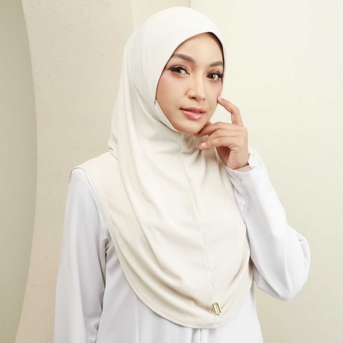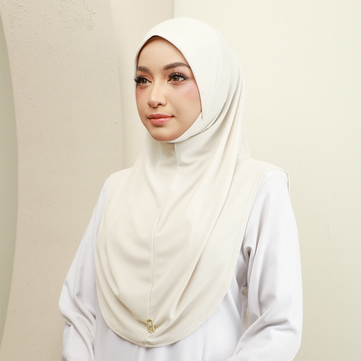 Maznee Express Hijab with elastic cover pad below your neck to cover your sweet chin. Suitable for those who wants to look slightly thin and cover your aurah. Maznee features a soft awning and has a wide and long cutting on all sides. Made of soft ironless moss crepe, this slip on instant will have you ready in seconds!