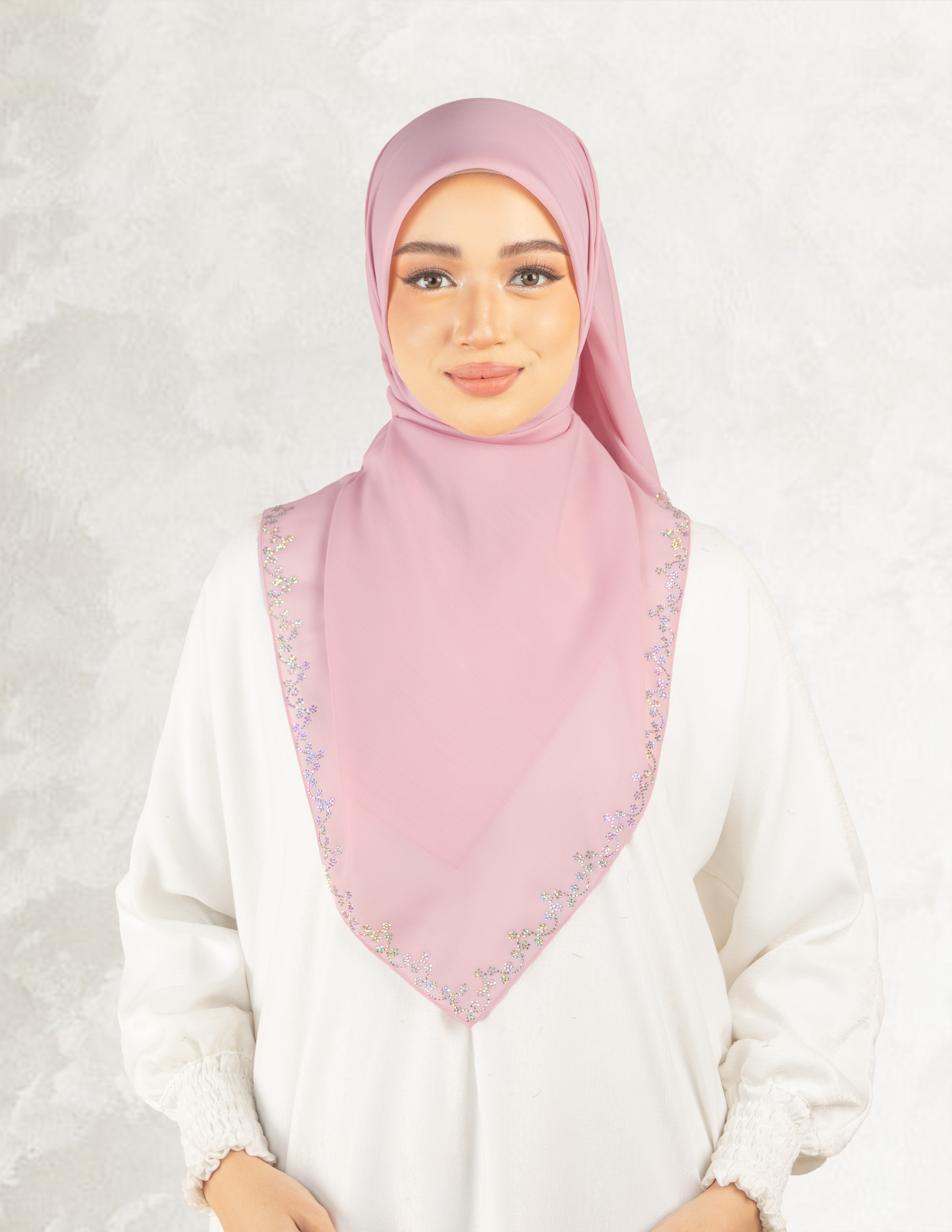 Kemasan Korean Stone yang halus di bahagian tepi menambah elemen mewah dan eksklusif tanpa kelihatan berlebihan, menjadikan Bawal Ratu sesuai digayakan untuk penampilan kasual elegan atau majlis formal. Saiz bidang 48 memberikan liputan yang sempurna, mudah dibentuk dan kemas sepanjang pemakaian.