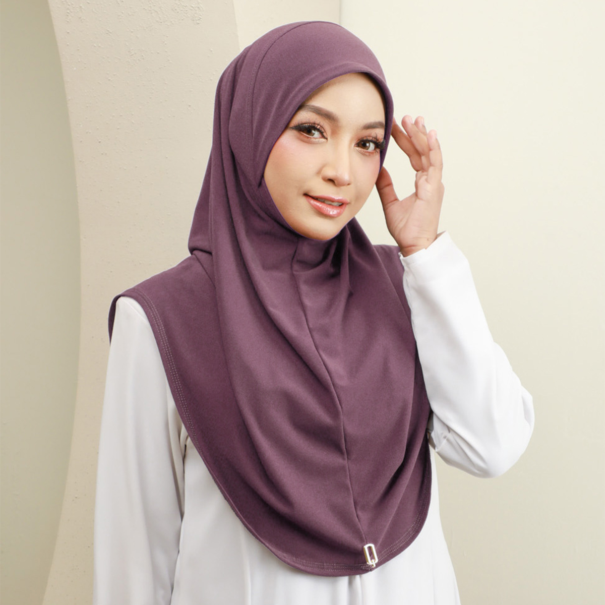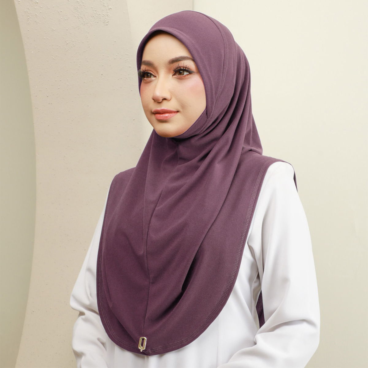 Maznee Express Hijab with elastic cover pad below your neck to cover your sweet chin. Suitable for those who wants to look slightly thin and cover your aurah. Maznee features a soft awning and has a wide and long cutting on all sides. Made of soft ironless moss crepe, this slip on instant will have you ready in seconds!