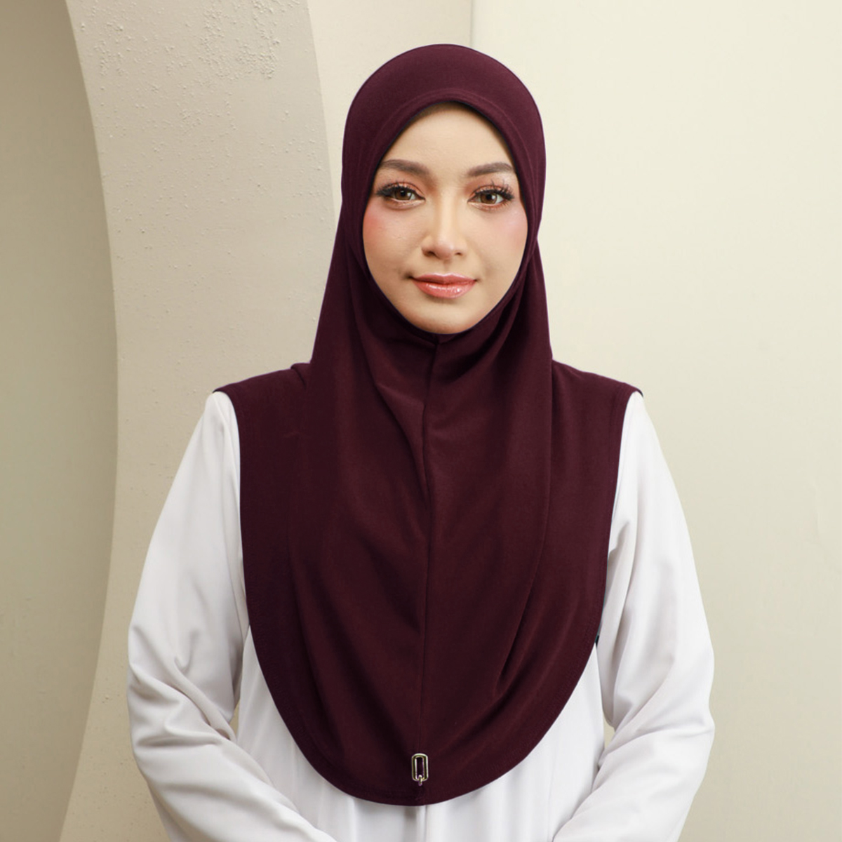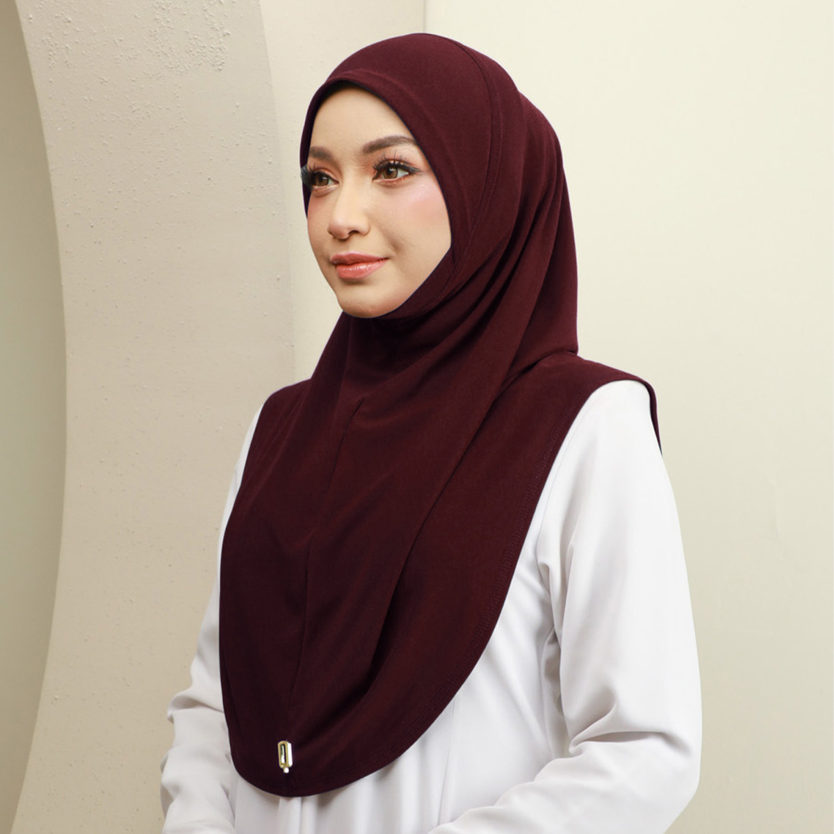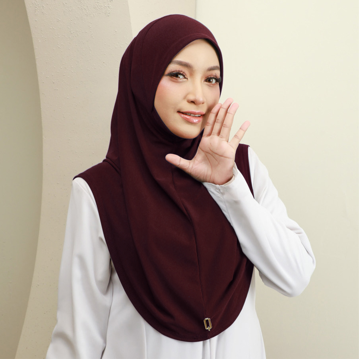 Maznee Express Hijab with elastic cover pad below your neck to cover your sweet chin. Suitable for those who wants to look slightly thin and cover your aurah. Maznee features a soft awning and has a wide and long cutting on all sides. Made of soft ironless moss crepe, this slip on instant will have you ready in seconds!