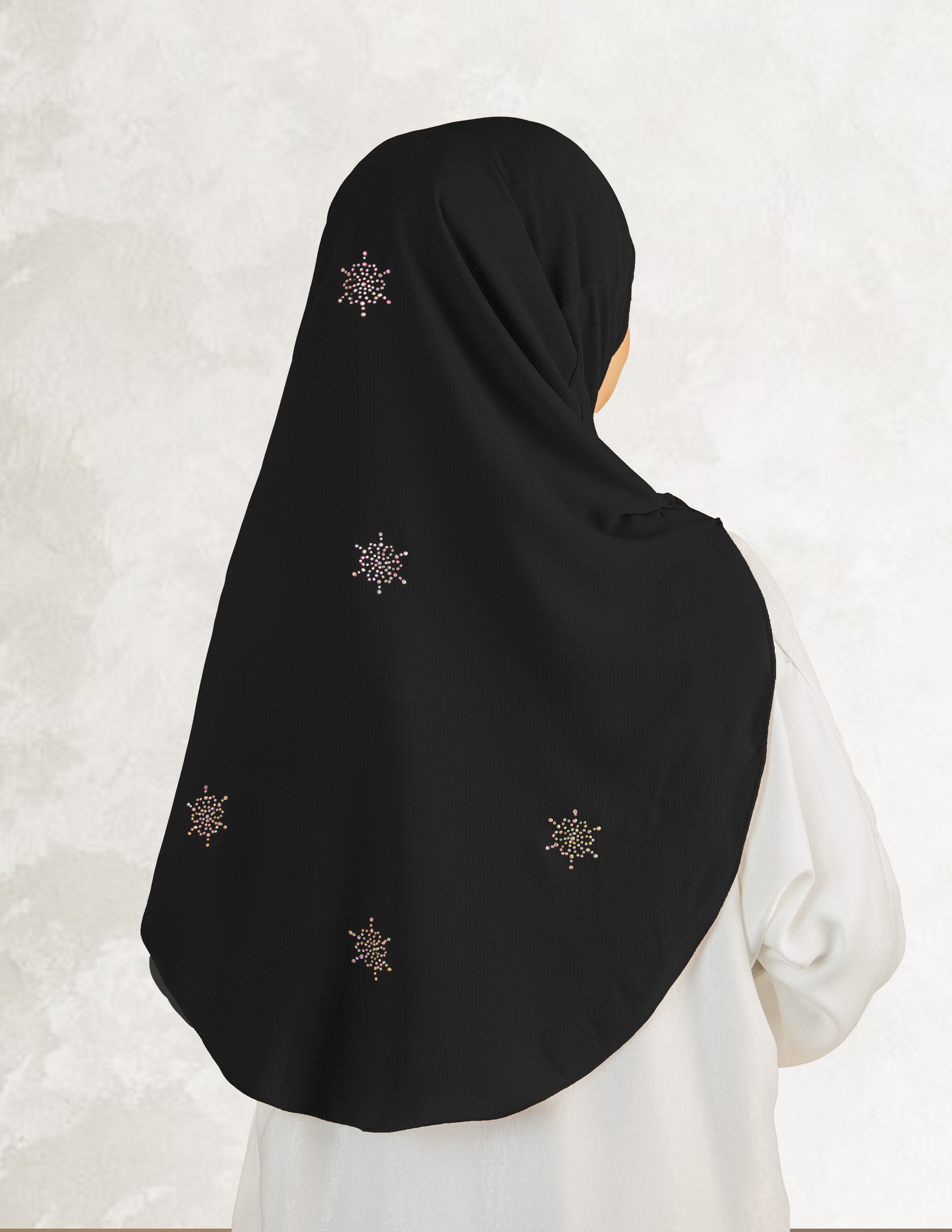 Rekaan dengan perincian korean stone yang elegan dan eksklusif, menjadikan Syarifah Plain sesuai digayakan untuk kegunaan harian, ke pejabat, majlis formal mahupun acara istimewa. Potongan tudung direka dengan ukuran yang seimbang untuk memberikan liputan yang baik di bahagian dagu, dada dan belakang tanpa menjejaskan keselesaan pemakai.